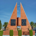 El monumento muestra a una figura alegórica de la Victoria alada con una espada, símbolo de la resistencia y el triunfo español, alzándose sobre un pedestal que incluye inscripciones y relieves que representan momentos de la batalla.